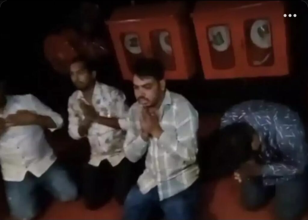 दैनिक किरनः नवी मुंबई (महाराष्ट्र) में एक थिएटर में ‘छावा’ फिल्म के इमोशनल सीन के दौरान 5 लोगों के हंसने पर उन्हें घुटनों पर बैठाकर माफी मांगने के लिए कहा गया। सामने आए वीडियो में घुटनों पर बैठा एक शख्स कह रहा है, “मैं छत्रपति शिवाजी महाराज से माफी मांगता हूं।” इसके बाद उन लोगों को थिएटर से बाहर निकाल दिया गया।