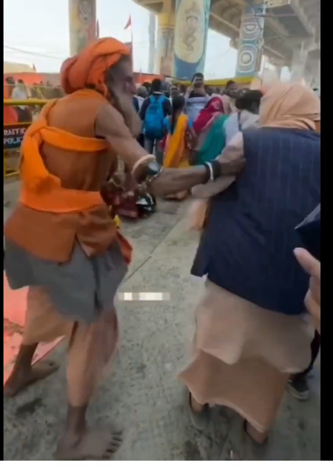 दैनिक किरनः महाकुंभ में एक बाबा लोगों को पीट रहा था। बाबा अब तक विदेशी पर्यटकों, पुलिस, पत्रकार और वकीलों के साथ ही आशीर्वाद लेने आ रहे श्रद्धालुओं को पीट चुका था। ऐसे में एक पत्रकार ने पुलिस से शिकायत की। इसके बाद पुलिस ने बाबा को मेले से भगा दिया है। पुलिस का कहना है कि बाबा की मानसिक हालत ठीक नहीं है, जिसके चलते उन्हें जेल नहीं भेजा गया।