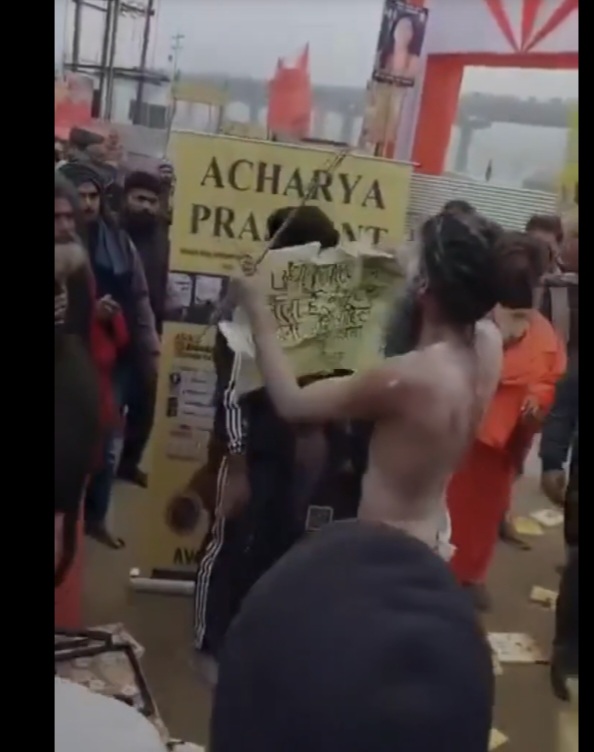 संवाददाता दैनिक किरनः उत्तर प्रदेश के प्रयागराज में चल रहे महाकुंभ में करोड़ों श्रद्धालु पहुंच रहे हैं। इस बीच कुछ युवा स्टॉल लगाकर महाकुंभ को अंधविश्वास बताने लगे। वे बैनर और पोस्टर लगाकर अंधविश्वास का विरोध कर रहे थे। इसी दौरान कई नागा साधु और श्रद्धालु मौके पर पहुंचे और युवाओं के स्टॉल को तोड़ दिया और बैनर-पोस्टर को आग लगा दी। इस दौरान बवाल की स्थिति बनी गई।